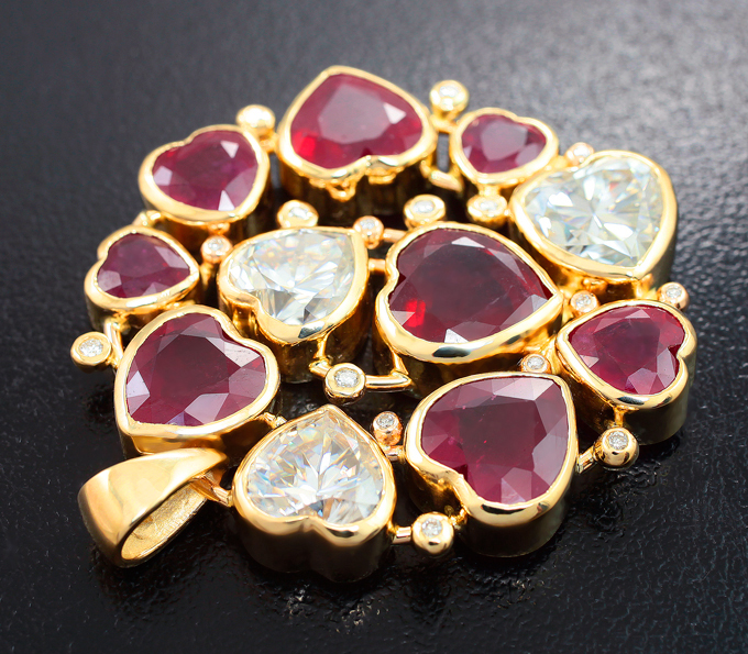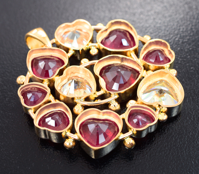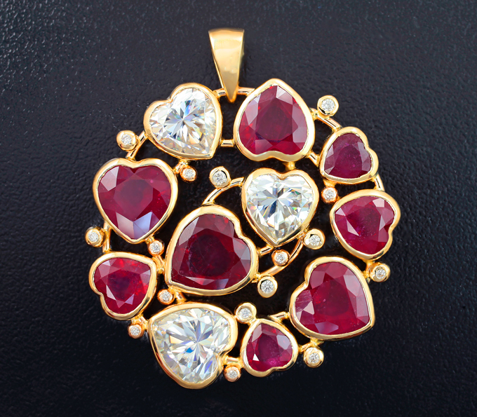 Кулон с рубинами 21,48 карата, муассанитами 6,79 карата и бриллиантами