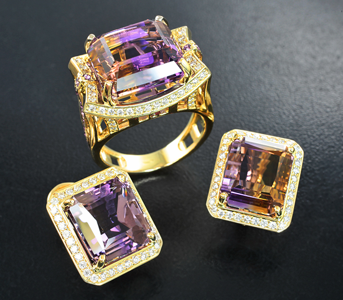 Комплект с аметринами 33,11 карата, аметистами и бриллиантами