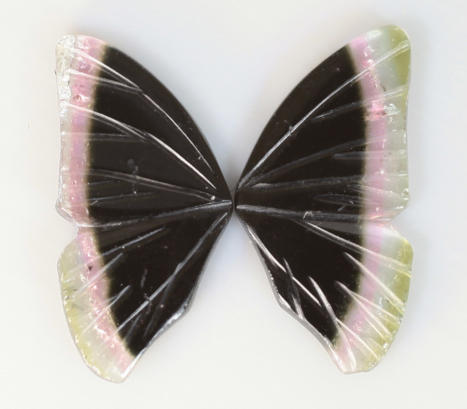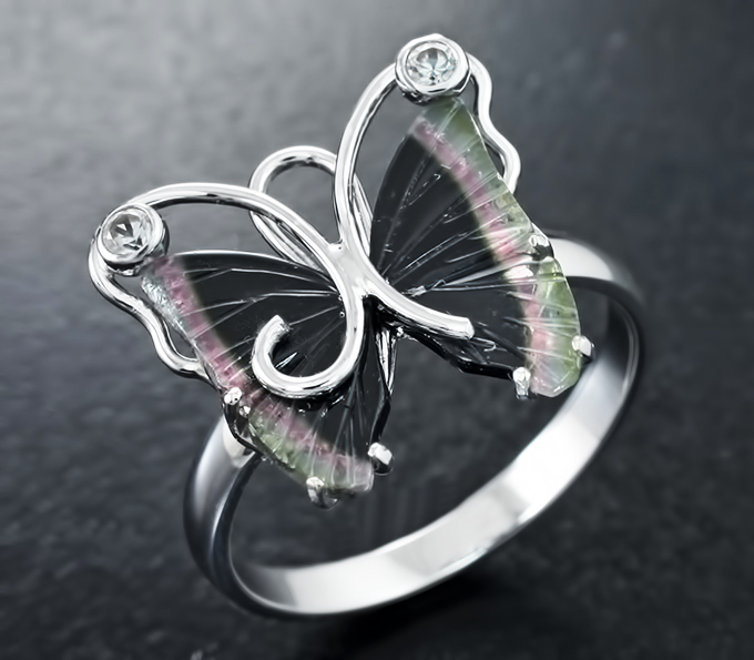 Кольцо с резными турмалинами 2,27 карата и бесцветными цирконами