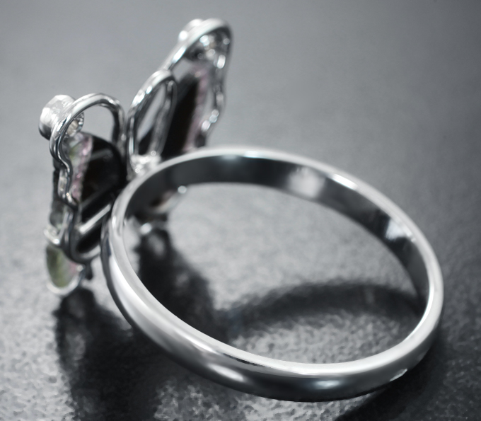 Вашему вниманию предлагается кольцо из белого золота 585 пробы c резными турмалинами и бесцветными цирконами! Диаметр дополнительной инкрустации 2 мм. Площадка 18 х 16 мм, высота 4 мм. Вес изделия 3,75 г. Размер 19. Ниже приводятся ювелирные характеристики.