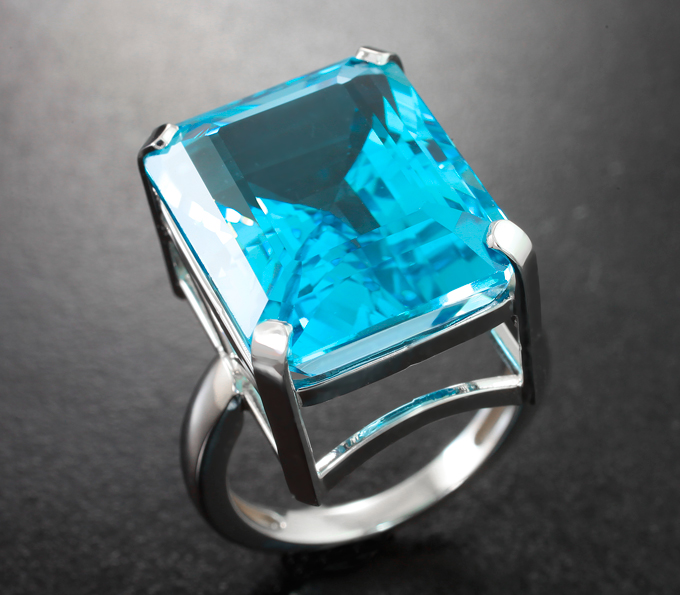 Кольцо с чистейшим голубым топазом 29,04 карата