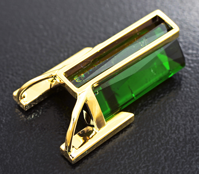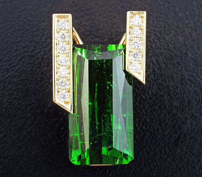 Кулон с крупным зеленым турмалином 10,58 карата и бриллиантами