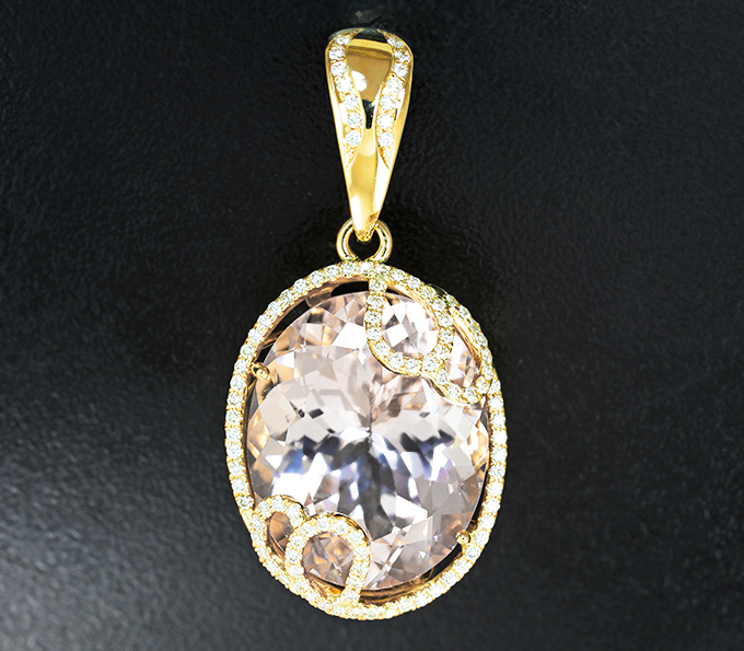 Кулон с морганитом высокой чистоты 25,8 карата и бриллиантами