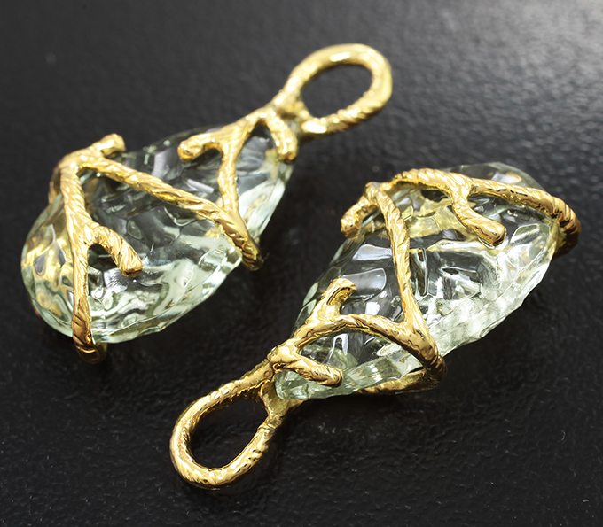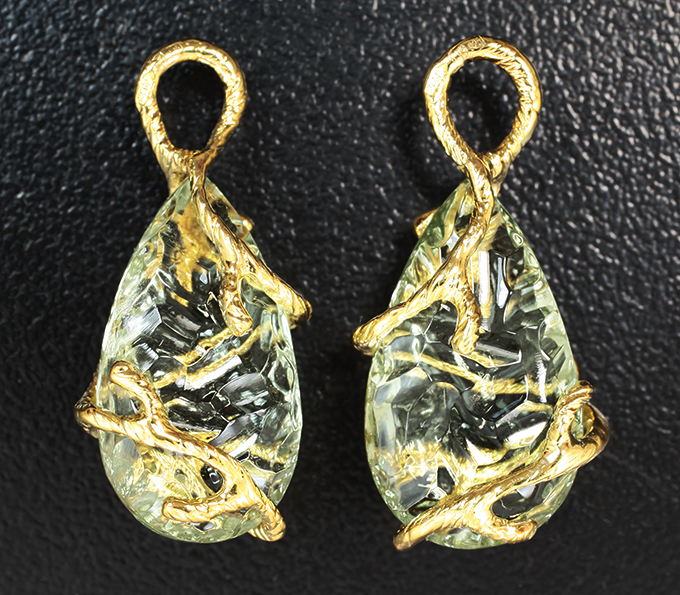 Подвесы для серег с зелеными аметистами авторской огранки 16,42 карата