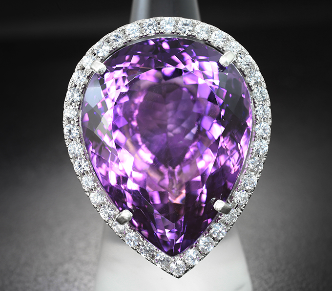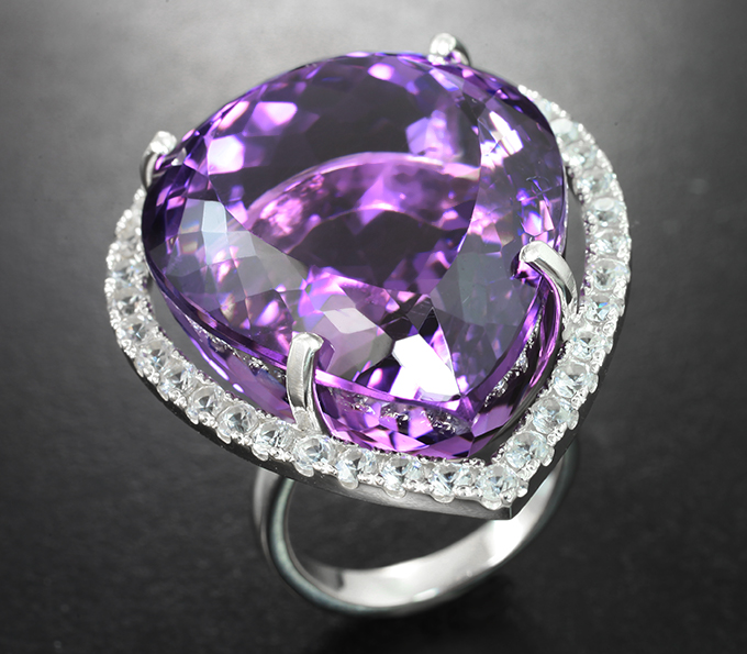 Кольцо с чистейшим крупным аметистом 66,83 карата и бесцветными цирконами