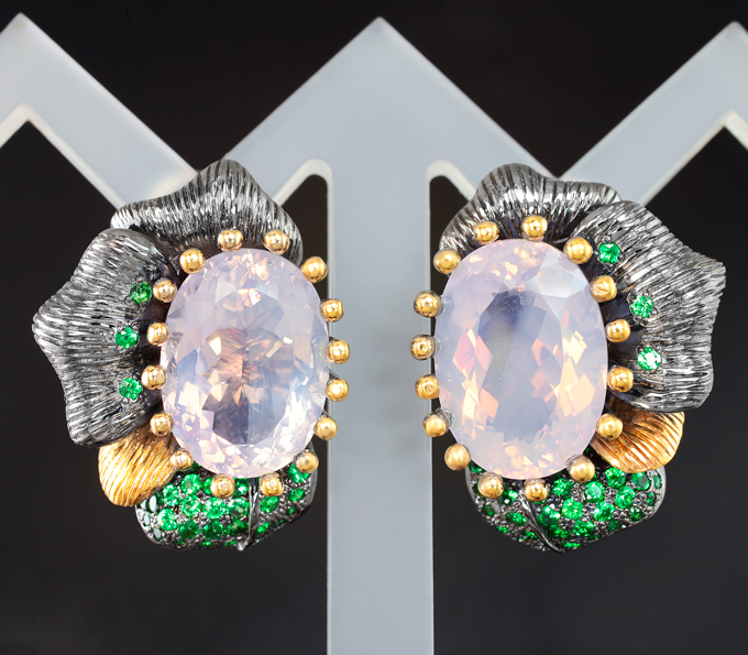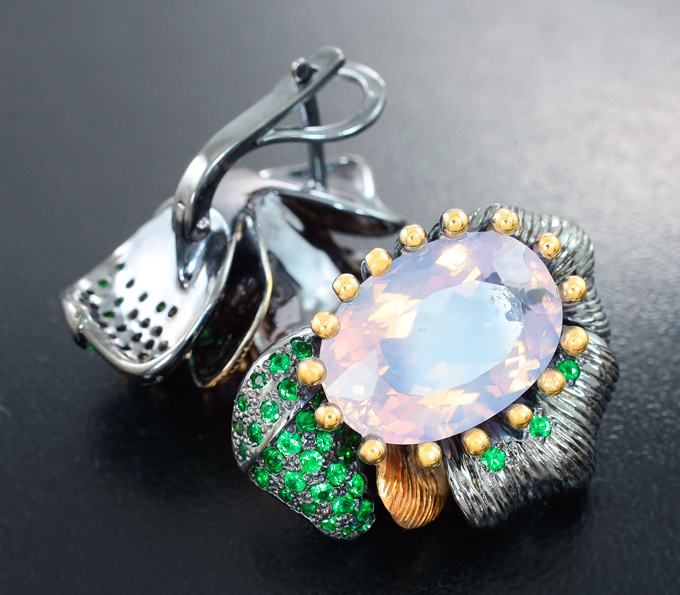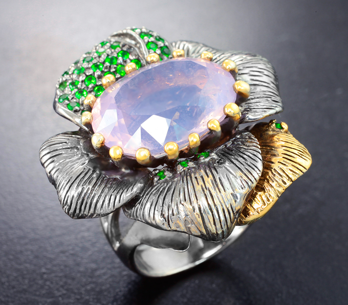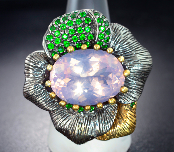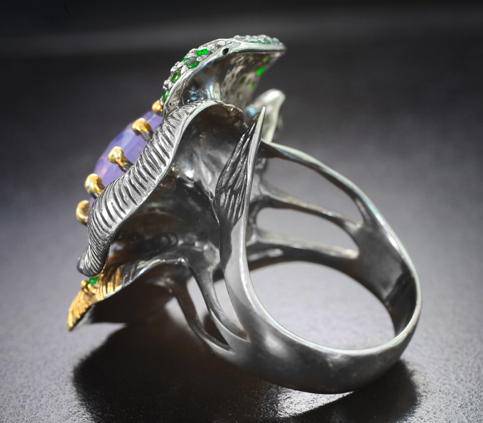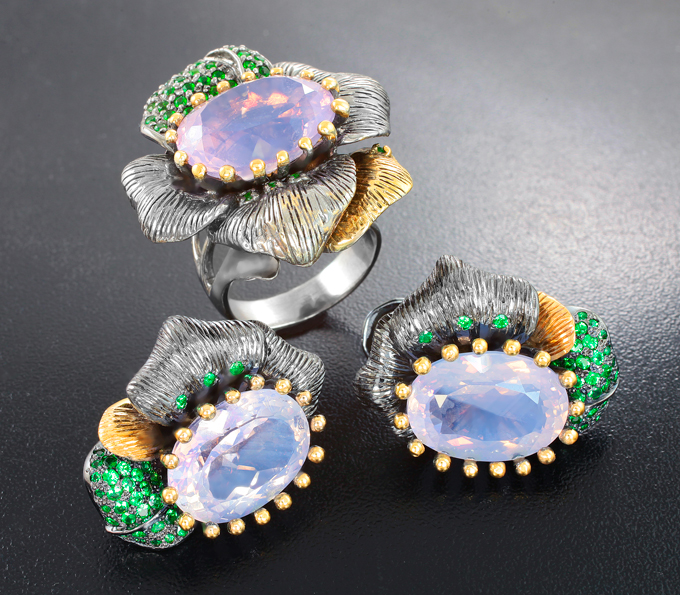 Вашему вниманию предлагается комплект (кольцо + серьги) из стерлингового серебра (925 проба) с лавандовыми аметистами и цаворитами гранатами! Изделия с чернением и позолотой. Размеры вставок от 1,1 мм до 18 х 14 мм. Вес комплекта 53,4 г.