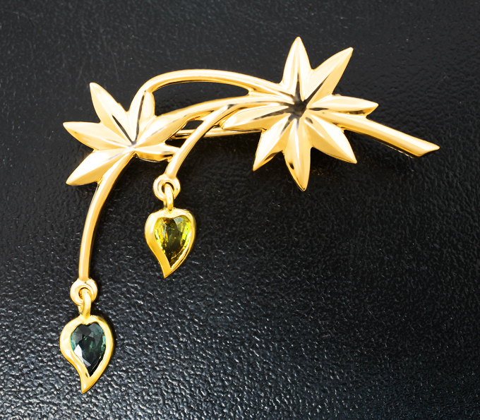 Вашему вниманию предлагается брошь из красного золота 585 пробы с сапфирами авторской огранки! Размеры изделия 41 х 32 мм. Вес изделия 4,79 г. Ниже приводятся ювелирные характеристики вставок.