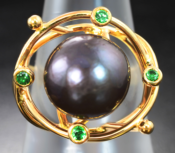 Кольцо с цветной морской жемчужиной барокко 11,76 карата и цаворитами