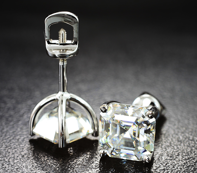 Вашему вниманию предлагаются пусеты из белого золота 585 пробы с муассанитами! Площадка пусет 8 х 8 мм. Вес пары 3,06 г. Ниже приводятся ювелирные характеристики вставок.