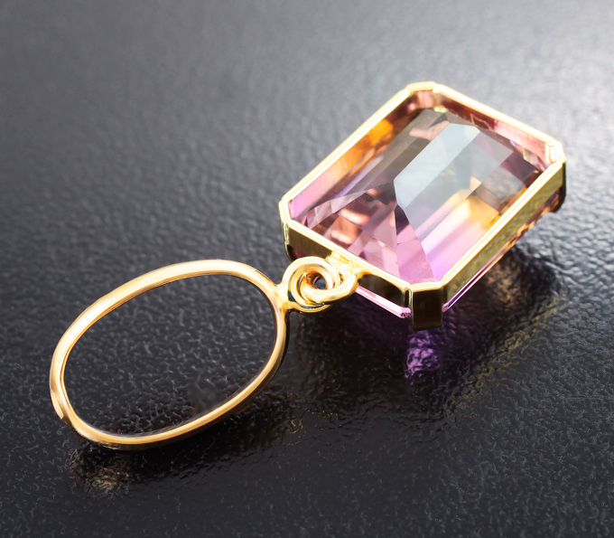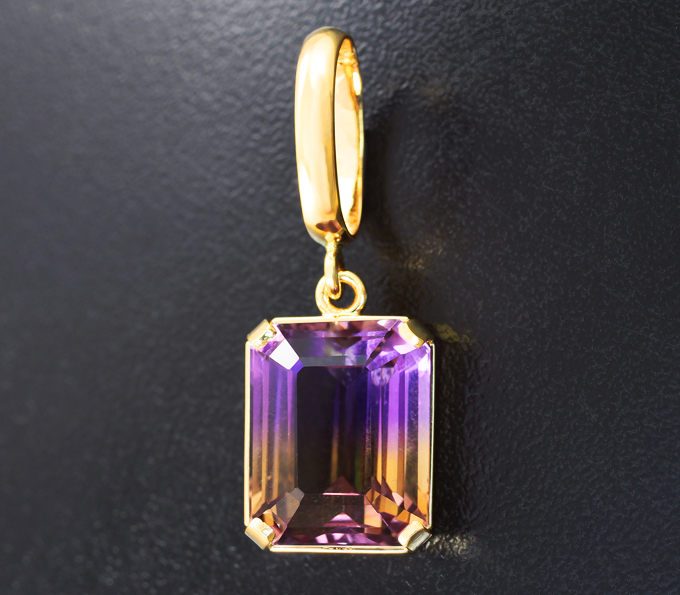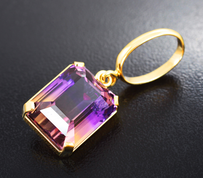 Вашему вниманию предлагается кулон из желтого золота 585 пробы с аметрином! Размеры кулона с петлей 34 х 12 мм. Вес изделия 3,99 г. Ниже приводятся ювелирные характеристики вставки.