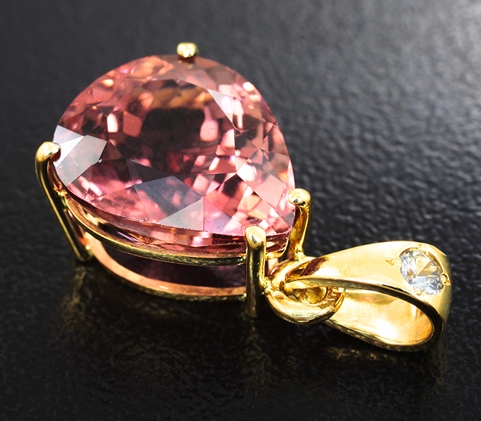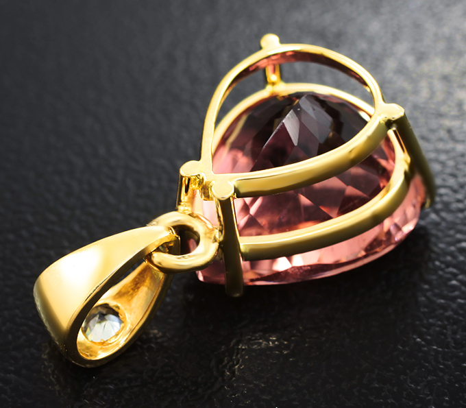 Вашему вниманию предлагается кулон из желтого золота 585 пробы с падпараджа турмалином и лейкосапфиром! Диаметр дополнительной инкрустации 2,5 мм. Размеры кулона с петлей 24 х 12 мм. Вес изделия 3,02 г. Ниже приводятся ювелирные характеристики вставки.