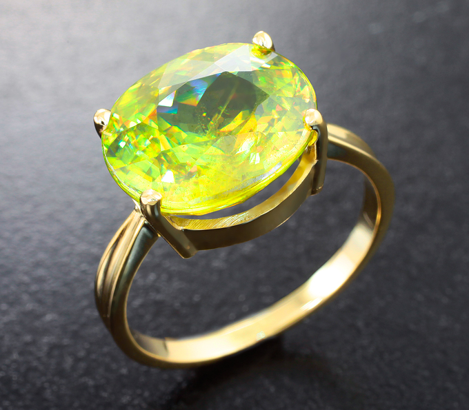 Кольцо с крупным желто-зеленым сфеном 7,29 карата