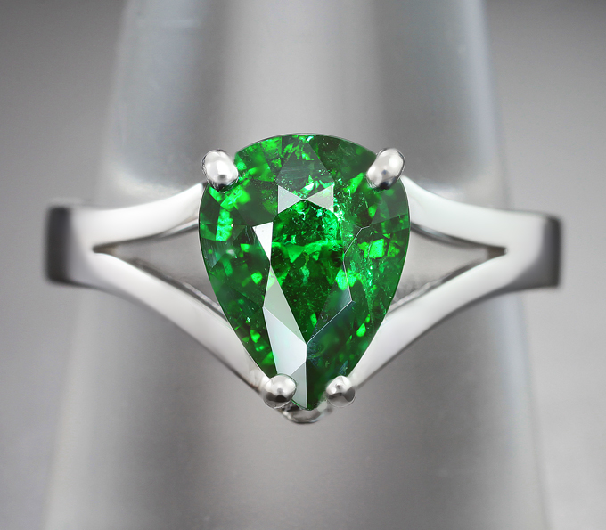 Вашему вниманию предлагается кольцо из белого золота 585 пробы c цаворитом гранатом! Площадка 10 х 7 мм, высота 6 мм. Вес изделия 3,75 г. Размер 16,75. Ниже приводятся ювелирные характеристики вставки.