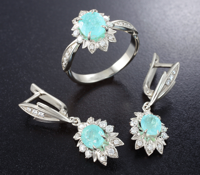 Комплект с параиба турмалинами 3,08 карата и бриллиантами