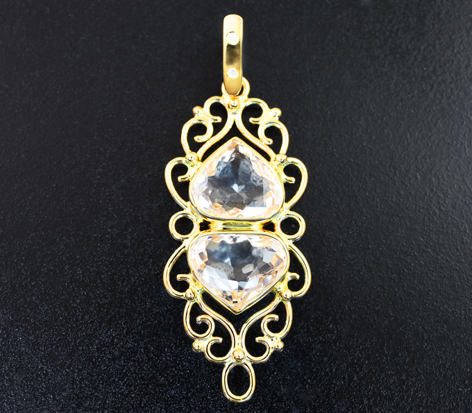 Вашему вниманию предлагается кулон из желтого золота 585 пробы с морганитами и бриллиантами! Диаметр дополнительной инкрустации 1,1 мм. Площадка 48 х 18 мм. Вес изделия 5,37 г. Ниже приводятся ювелирные характеристики морагнитов.