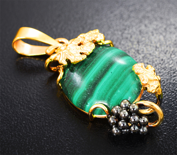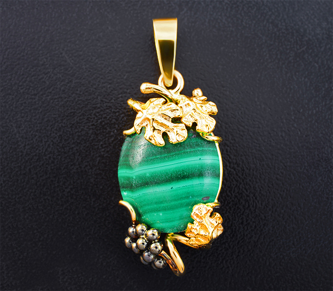 Вашему вниманию предлагается кулон из желтого золота 585 пробы с уральским малахитом 11,55 карата! Изделие с частичным чернением. Размеры вставки 18 х 15 мм. Размеры кулона с петлей 39 х 16 мм. Вес изделия 6,48 г.