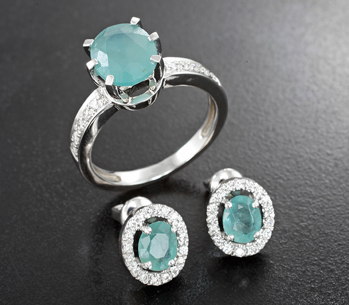 Вашему вниманию предлагается комплект (кольцо + пусеты) из белого золота 585 пробы с грандиьеритами 3,42 карата и бриллиантами! Размеры грандидьеритов 6 х 5 мм и 9,4 х 7,6 х 4,4 мм, диаметр бриллиантов 1,1 мм и 1,5 мм. Вес комплекта 7,75 г.