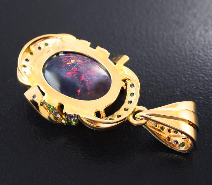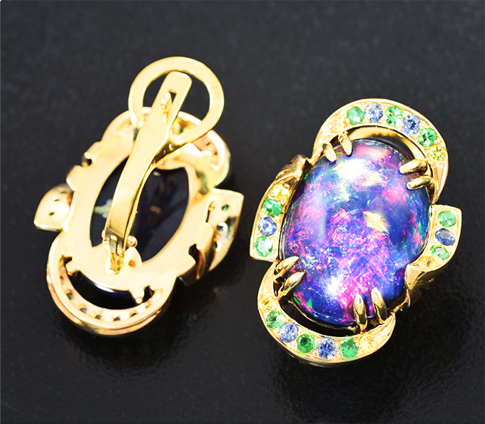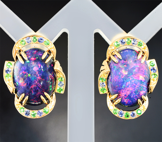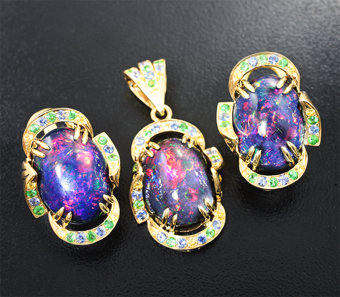 Комплект с кристаллическими черными опалами 22,22 карата, сапфирами и цаворитами