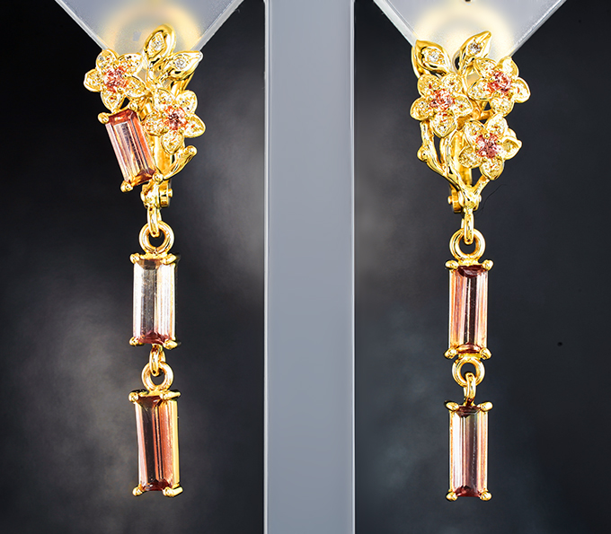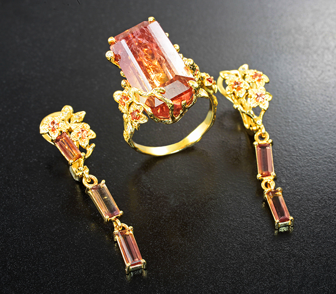 Комплект с полихромными турмалинами, золотистыми сапфирами и бриллиантами