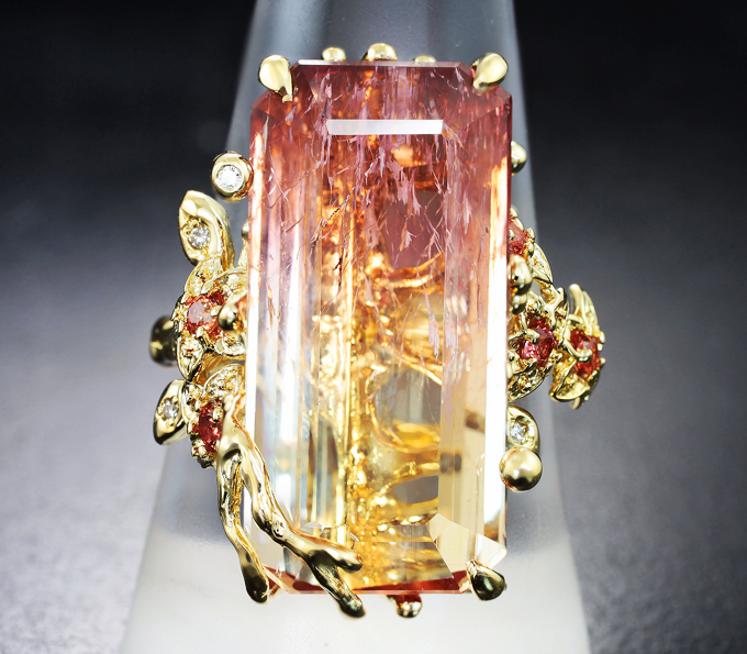 Вашему вниманию предлагается комплект (кольцо + серьги) из желтого золота 585 пробы с полихромными турмалинами, золотистыми сапфирами и бриллиантами! Диаметр дополнительной инкрустации 2 мм. Вес комплекта 16,14 г.