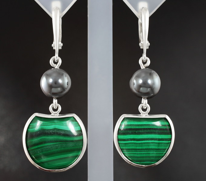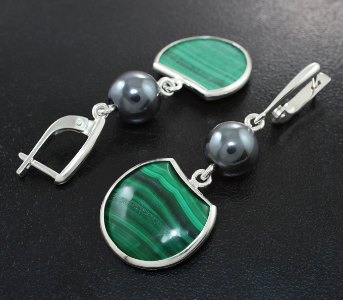 Серьги с уральским малахитом 18,93 карата и гематитом