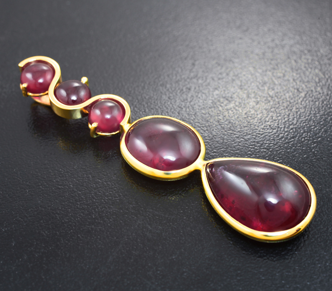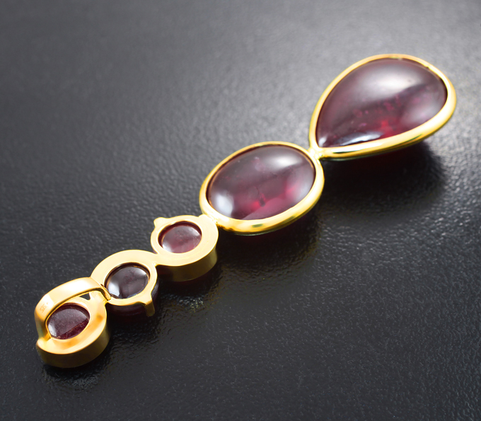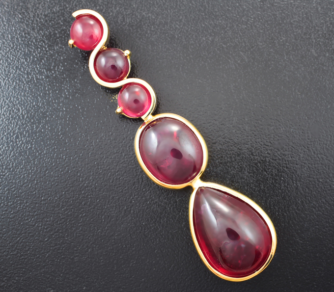 Вашему вниманию предлагается кулон из желтого золота 585 пробы с рубинами 38,5 карата! Размеры вставок от 8 мм до 19 х 13 мм. Площадка 62 х 15 мм. Вес изделия 11,25 г. Ниже приводятся ювелирные характеристики вставок.