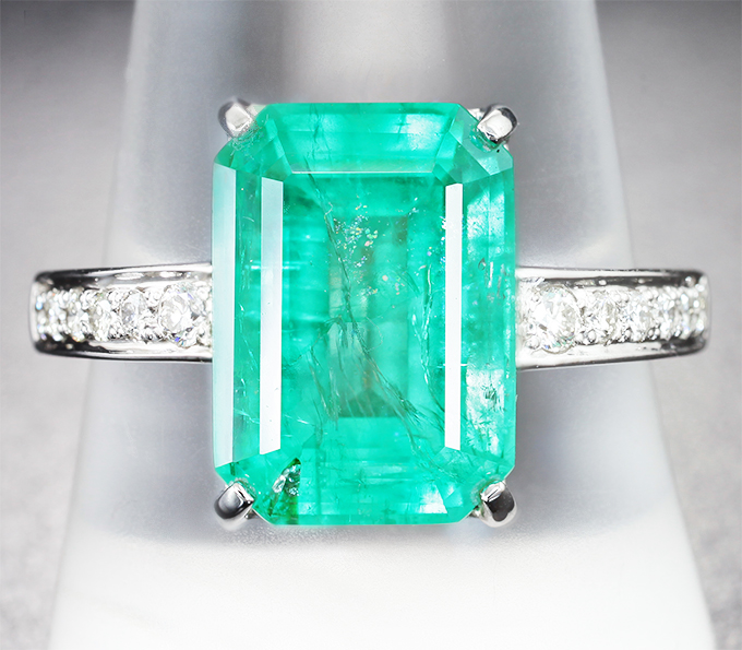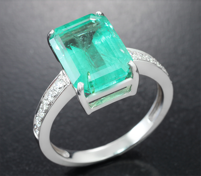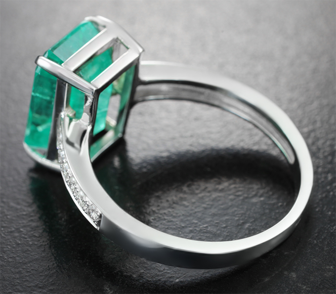 Кольцо с уральским изумрудом 5,6 карата и бриллиантами