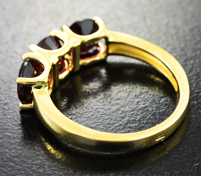 Вашему вниманию предлагается кольцо из желтого золота 585 пробы с пиропами гранатами! Площадка 18 х 6 мм, высота 5 мм. Вес изделия 3,56 г. Размер 17. Ниже приводятся ювелирные характеристики вставок.