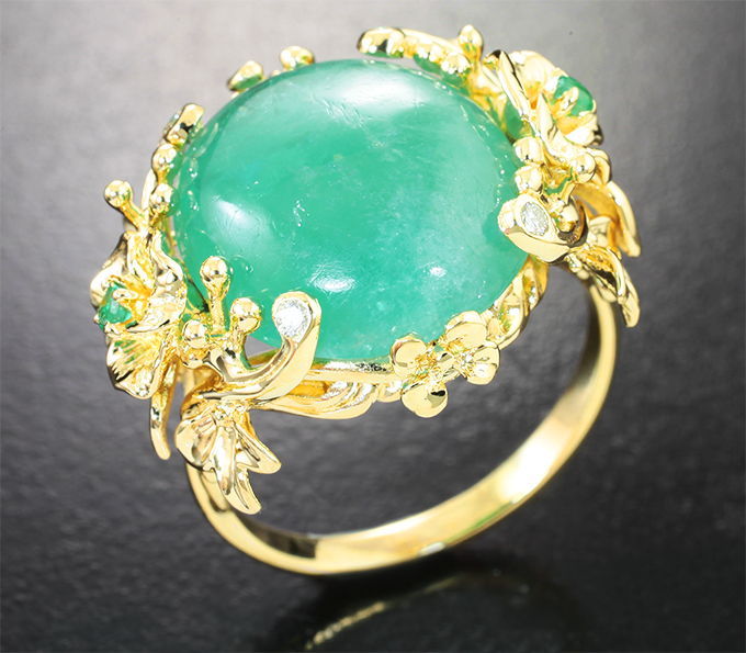 Кольцо с уральским изумрудом 11,97 карата и бриллиантами