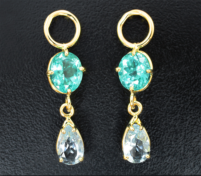 Подвесы для серег с «неоновыми» апатитами 2,79 карата и аквамаринами 1,05 карата