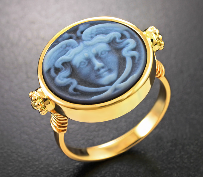 Кольцо c камеей из агата с ониксом 5,07 карата