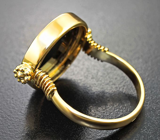 Вашему вниманию предлагается кольцо из желтого золота 585 пробы c камеей из агата с ониксом! Площадка 23 х 18 мм, высота 4 мм. Вес изделия 7,07 г. Размер 18,5. Ниже приводятся ювелирные характеристики вставки.