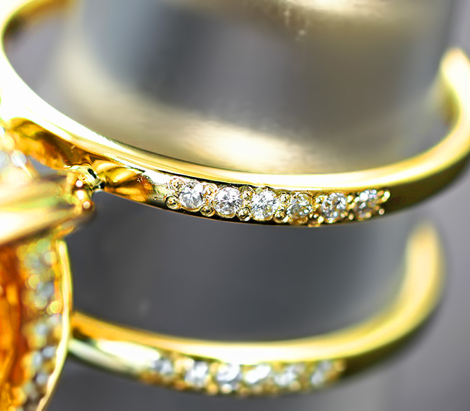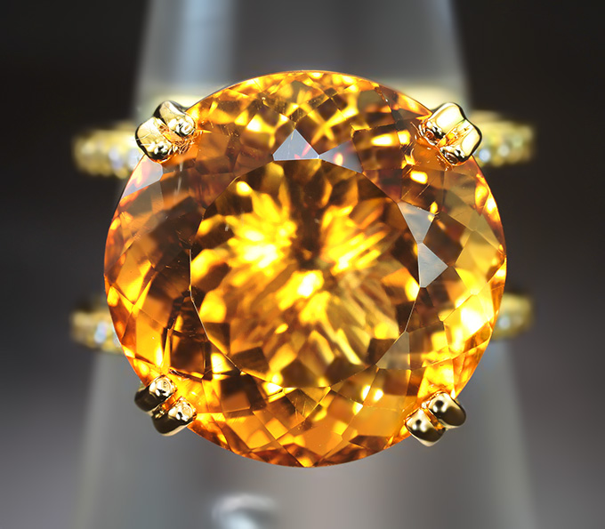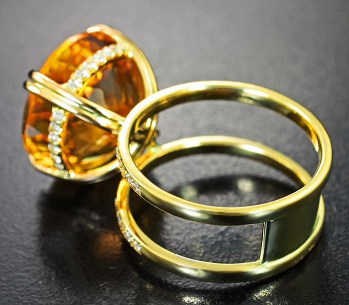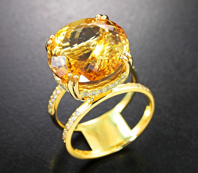 Кольцо с цитрином 12,57 карата, бесцветными цирконами и бриллиантами