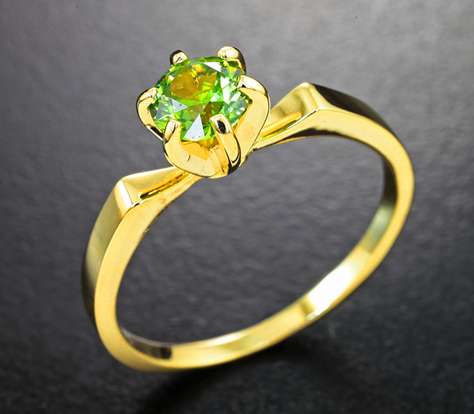 Вашему вниманию предлагается кольцо из желтого золота 585 пробы с демантоидом гранатом! Площадка 7 х 6 мм, высота 7 мм. Вес изделия 2,47 г. Размер 17,5. Ниже приводятся ювелирные характеристики вставки.
