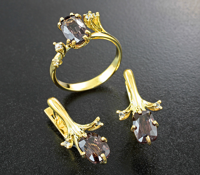 Комплект с гранатами со сменой цвета 6,16 карата и бесцветными топазами