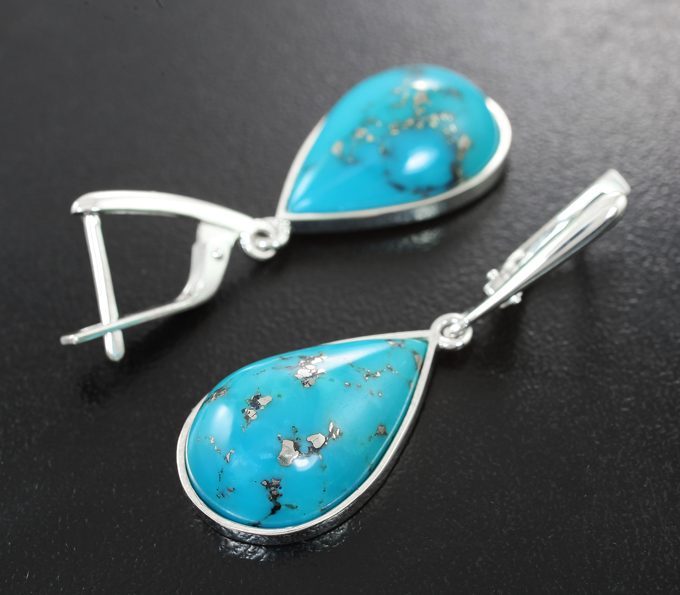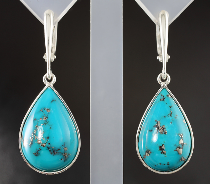 Вашему вниманию предлагается комплект (кольцо + серьги) из стерлингового серебра (925 проба) с кабошонами армянской бирюзы с включением пирита 31,68 карата! Размеры вставок 18 х 13 мм и 20 х 14 мм. Вес комплекта 11,82 г.