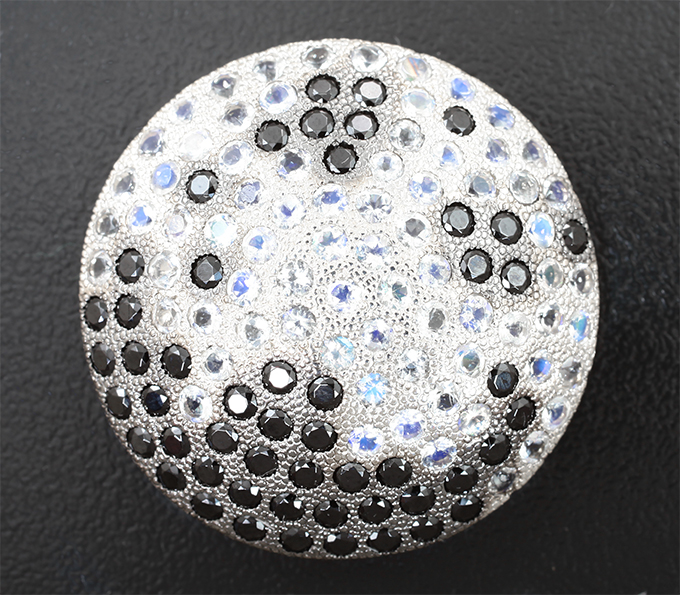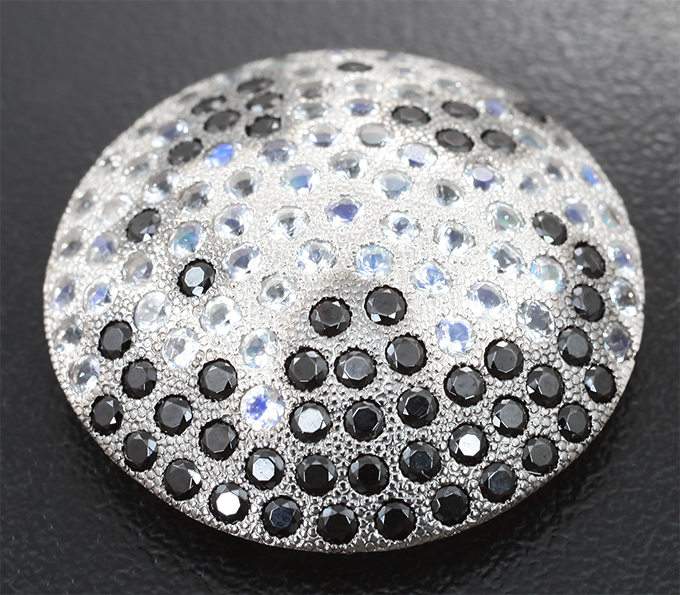 Вашему вниманию предлагается кулон из белого золота 585 пробы с ограненным лунным камнем и черными шпинелями! Диаметр вставок 2 мм. Диаметр кулона 29 мм. Вес изделия 7,45 г.