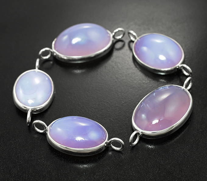 Вашему вниманию предлагается звенья для браслета из стерлингового серебра (925 проба) с кабошонами лавандового халцедона! Размеры изделий от 35 х 17 мм до 40 х 20 мм. Вес изделия 34,02 г. Ниже приводятся ювелирные характеристики вставок.