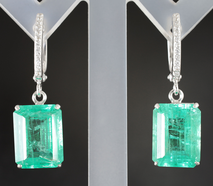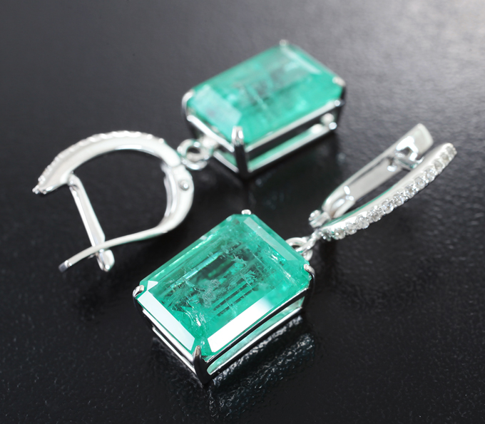 Серьги с изумрудами 10,63 карата и бесцветными цирконами