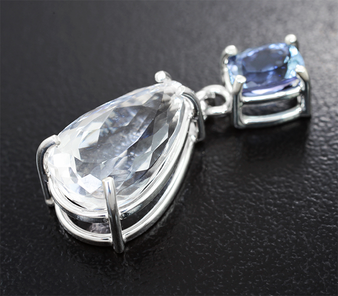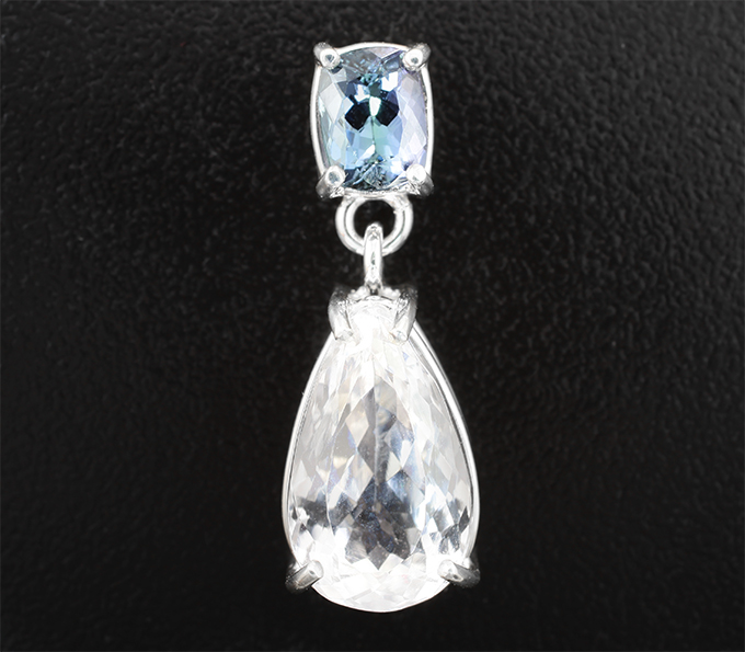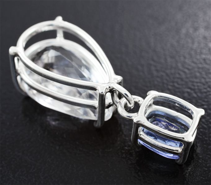 Кулон с бесцветным кунцитом 6,77 карата и полихромным танзанитом