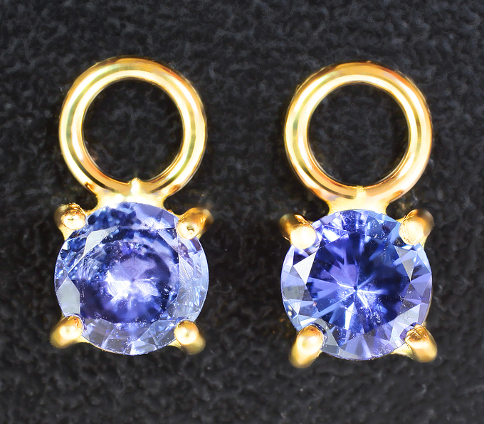 Вашему вниманию предлагаются подвесы для серег из желтого золота 585 пробы с танзанитами! Размеры изделия 10 х 6 мм. Вес пары 0,83 г. Ниже приводятся ювелирные характеристики вставок.