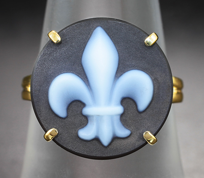 Кольцо с камеей из цельного полихромного агата 5,12 карата