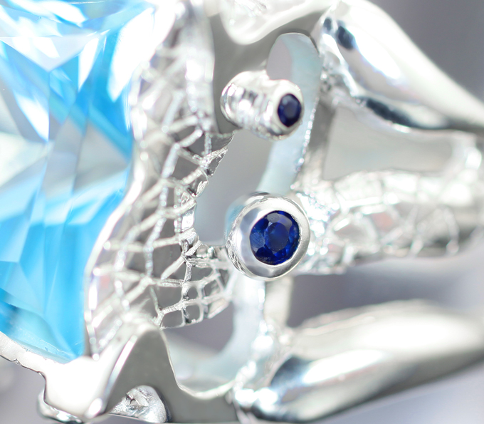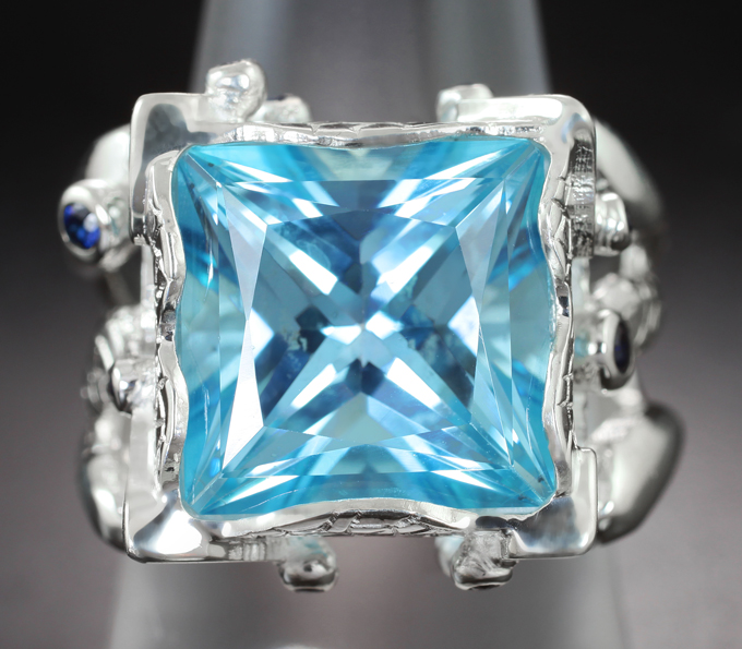 Кольцо с чистейшим голубым топазом 10,76 карата и синими сапфирами