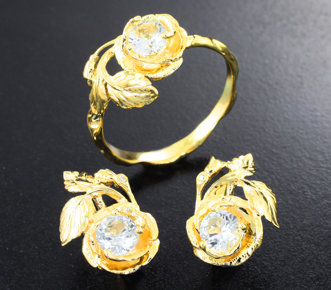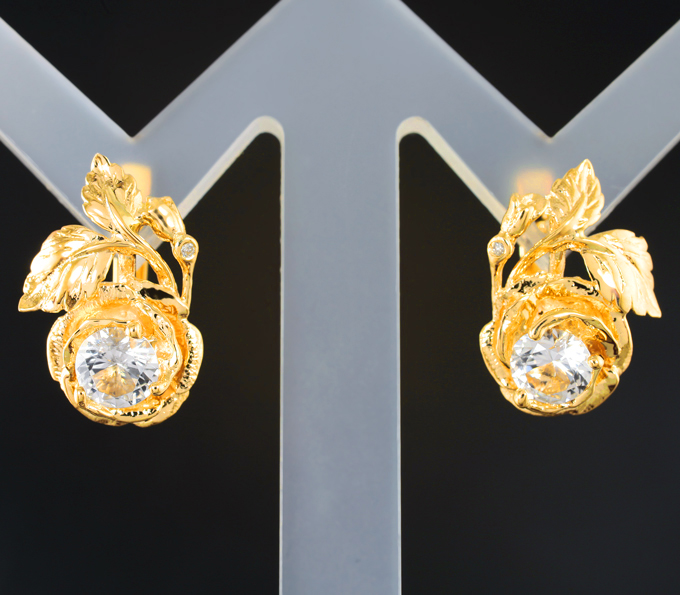 Вашему вниманию предлагается комплект (кольцо + серьги) из желтого золота 585 пробы с ограненными бесцветными фенакитами и бриллиантами! Диаметр дополнительной инкрустации 1,1 мм. Вес комплекта 8,35 г.