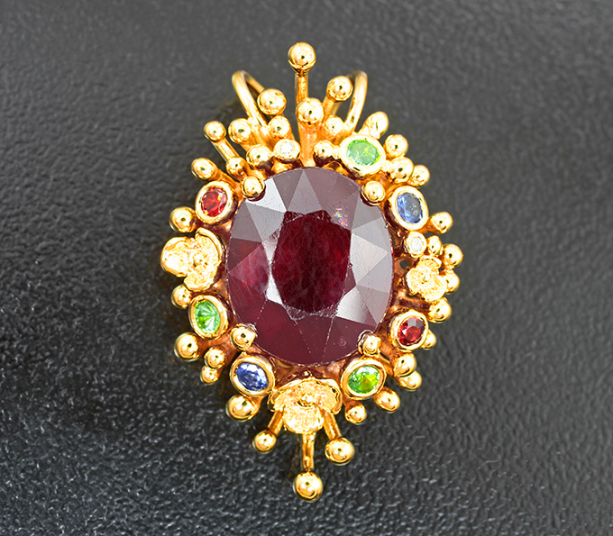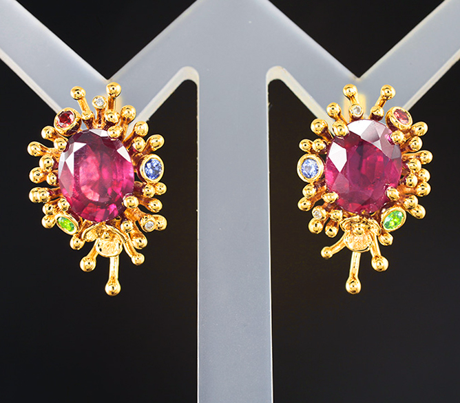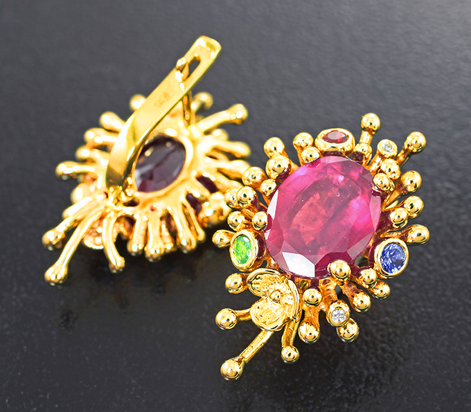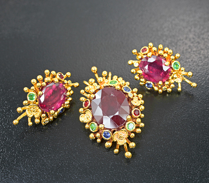 Комплект с рубинами 15,93 карата, красными и синими сапфирами, цаворитами и бриллиантами