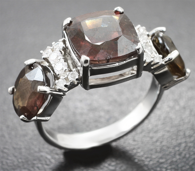 Кольцо с гранатами со сменой цвета 10,56 карата и лейкосапфирами