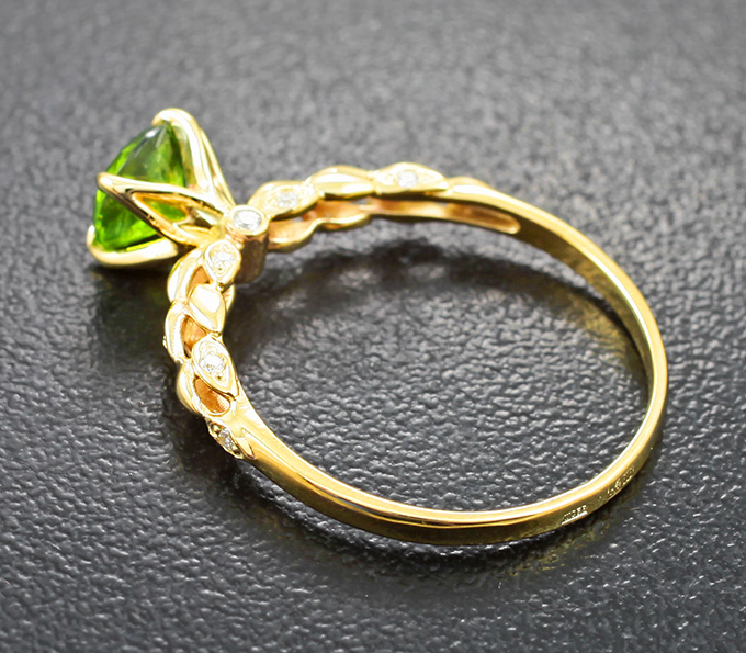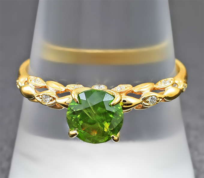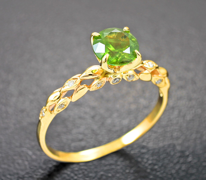 Кольцо с уральским демантоидом 1,09 карата и бриллиантами