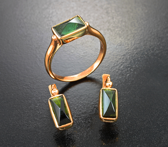 Вашему вниманию предлагается комплект (кольцо + серьги) из стерлингового серебра (925 проба) с зелеными турмалинами! Изделия позолочены. Вес комплекта 5,05 г.