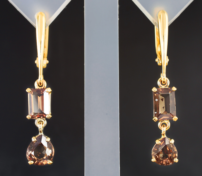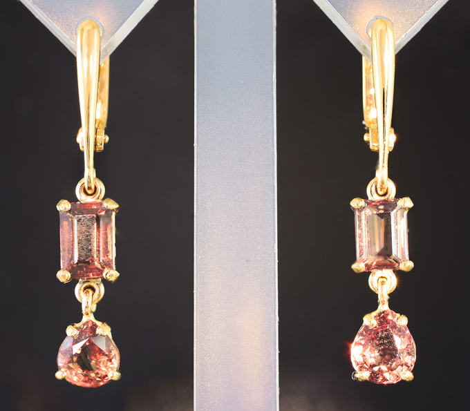 Вашему вниманию предлагаются серьги из желтого золота 585 пробы с гранатами со сменой цвета! Размеры серег с петлей 35 х 6 мм. Вес пары 4,1 г. Ниже приводятся ювелирные характеристики вставок.