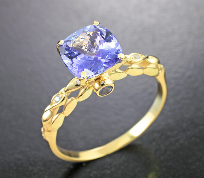 Кольцо с танзанитами 1,75 карата и бриллиантами